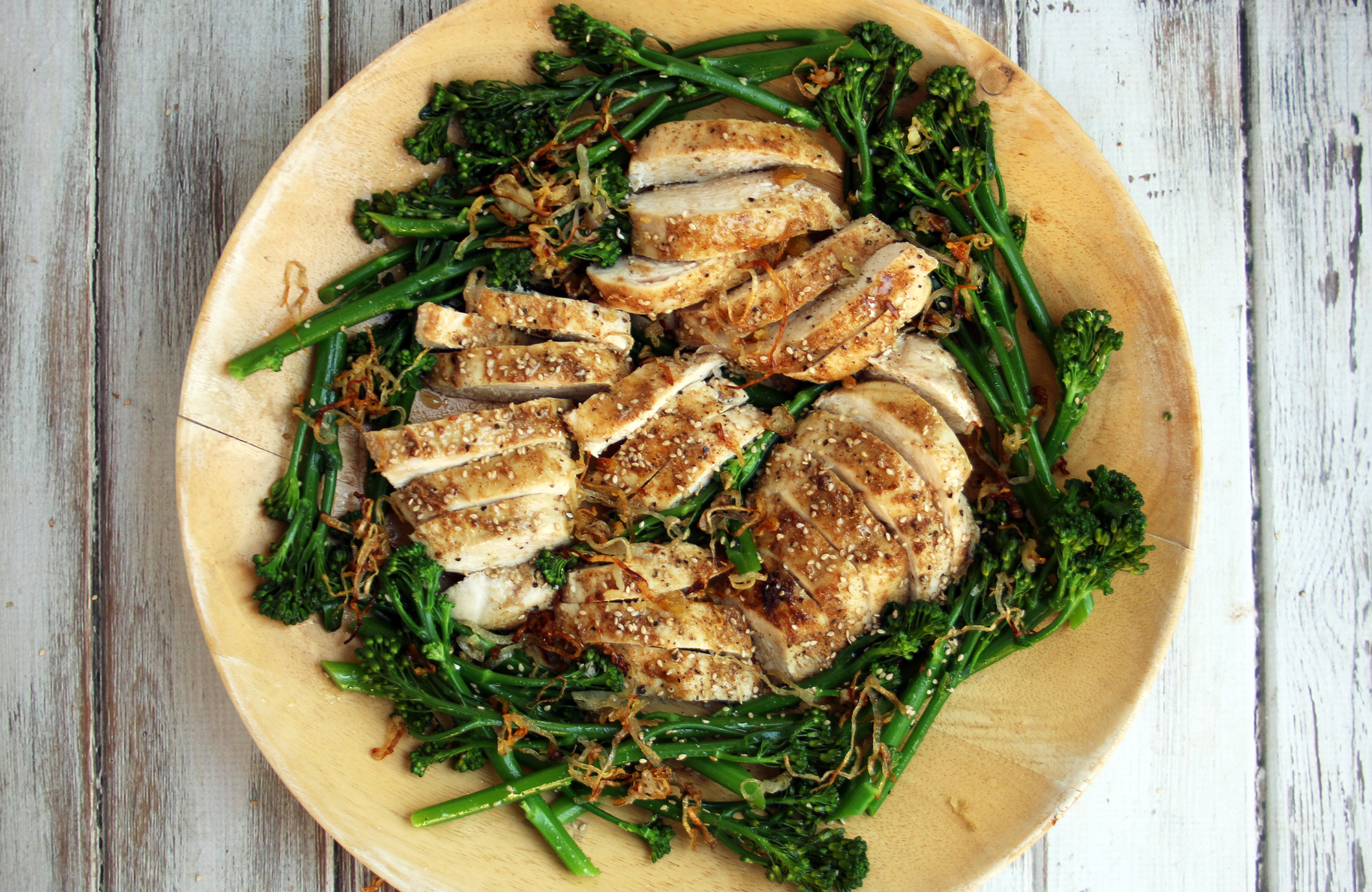 Chicken and Sesame Broccolini with Crispy Shallots